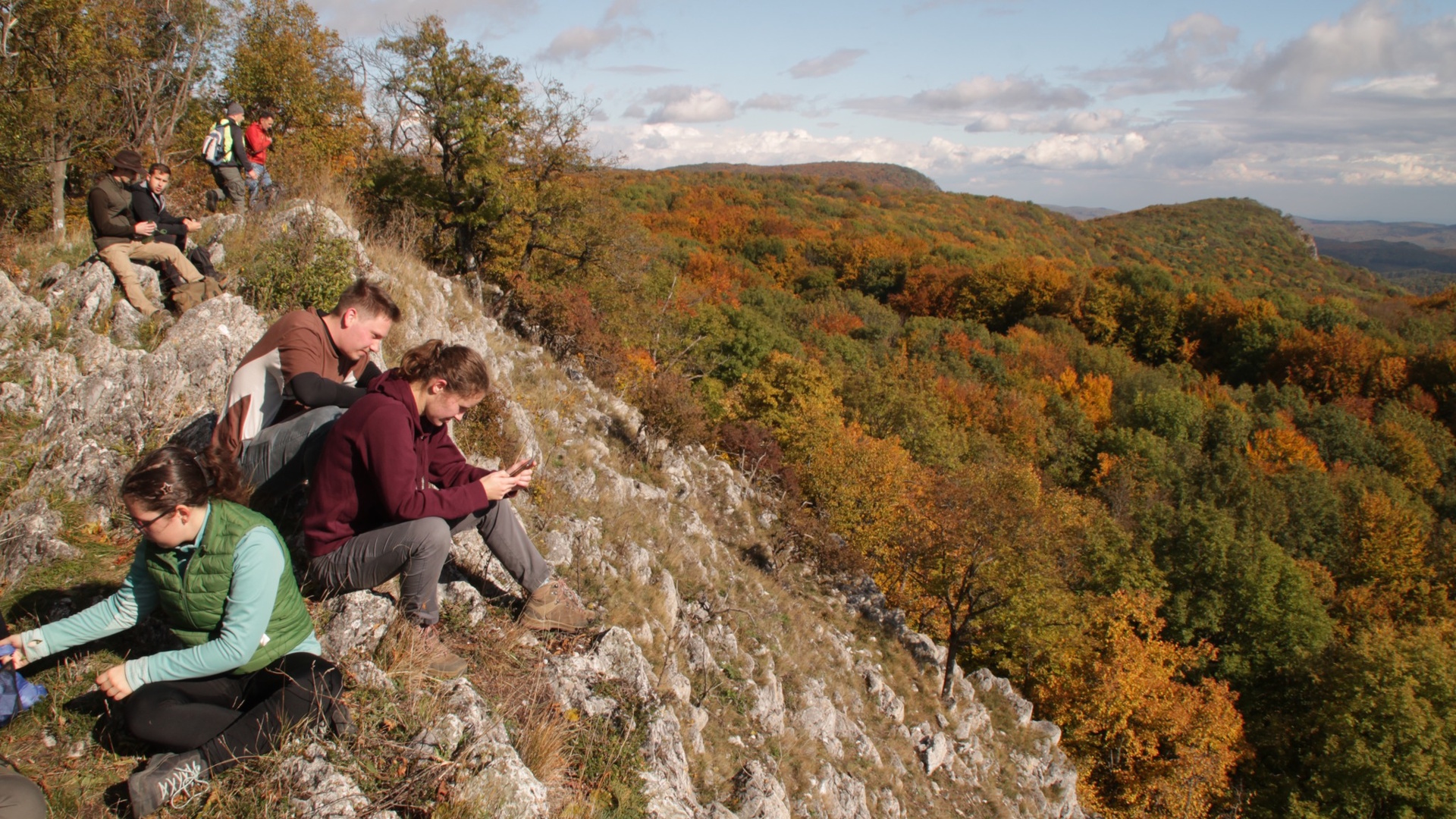 Az októberi három napos vándorlás helyszíne ezúttal a Bükk-vidék UNESCO Globális Geopark őszi színekbe öltözött vidéke volt. Szarvaskő és Dédestapolcsány között közel 60 km-es távon járta végig a vidám geo-team az Országos Kéktúra útvonalát. Szarvaskő térségében egy jura időszakban (kb. 165 millió éve) létezett óceáni aljzat maradványait tanulmányozhatták, bazaltos párnalávák és palává préselődött finomszemű mélytengeri üledékek formájában. Bélapátfalva és Bánkút között egy triász időszaki sekélytengeri selfen lerakódott karbonátos rétegsor (Bükkfennsíki Mészkő Formáció) feltárásait és formakincsét szemlélhették meg a hallgatók. A nagy tisztaságú és jól oldódó mészkövön típusos és látványos karsztos formakincs (például ördögszántás, dolina, víznyelő, uvala, polje, zsomboly, barlang) fejlődött ki, amelyet az Országos Kéktúra útvonala is felfűz. A „bükki kövek” (Bél-kő, Őr-kő, Tar-kő) sziklás, fehéren vakító „homlokairól” pedig szenzációs kilátásokban volt részük. A harmadik túranapon a Bükk északi részének paleozoos (óidei) palákból álló térszíneit járhatták végig a geokéktúrások, reggel megtekintve a nemzetközi jelentőségű Bálvány–Észak szelvényt is, amely a földtörténeti perm és triász időszakok határát mutatja be.