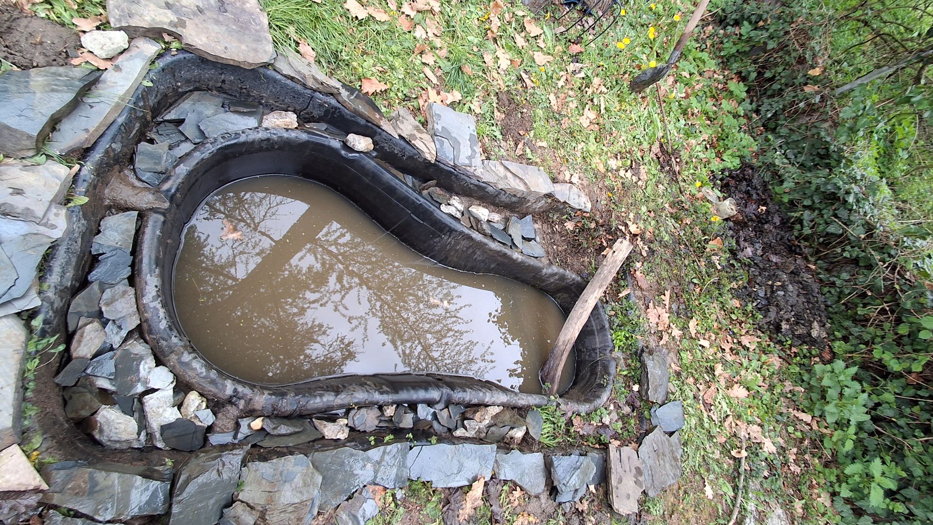 A természetiskola udvarán kialakításra került egy kisebb tó, bemutatva az odalátogatók számára a kisvizes élőhelyek fontosságát. A kis tó, méretének köszönhetően sajnos az utóbbi időben kezdett beszennyeződni és a szélén található kövek is a víz aljára kerültek. Ebben az állapotban eredeti funkcióját már nem igazán tudta betölteni, a környéken élő kétéltűek számára csaknem alkalmatlanná vált a szaporodásra. Ezt a kerti, kisvizes élőhelyet hozta rendbe az önkéntesek bent maradt társaságából kialakult egyik kis csapat. A folyamat során először a vizet vödörrel kimerték a kis tóból, majd eltávolították az aljáról az iszapot és a beledobált köveket. Természetesen folyamatosan ügyeltek arra is, hogy az esetlegesen benne található élőlényeket ne veszélyeztessék. Így került elő két varangy és egy erdei béka, melyeket megfelelő, természetes környezetben elengedtek. A tisztítás után a közeli tóból hordtak az önkéntesek vizet a pótlásra.